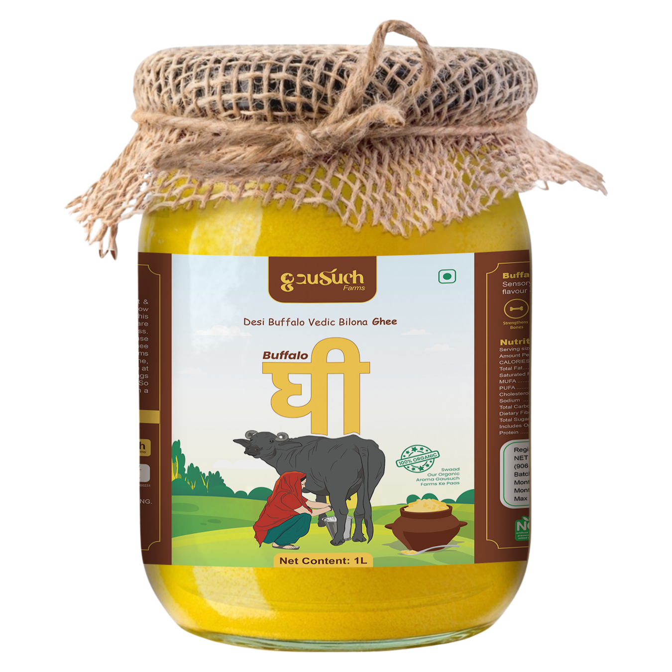 Pure Bilona A2 Desi Ghee made from traditional curd-churning process.
